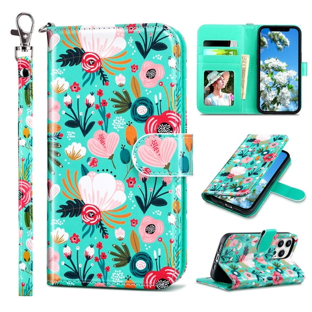 Ulak Wallet Case For Iphone 13 Pro For Women Girls Kickstand Phone Case With Card Holder For Apple Iphone 13 Pro 6 1 Inch 2021 Mint Flora Walmart Com
